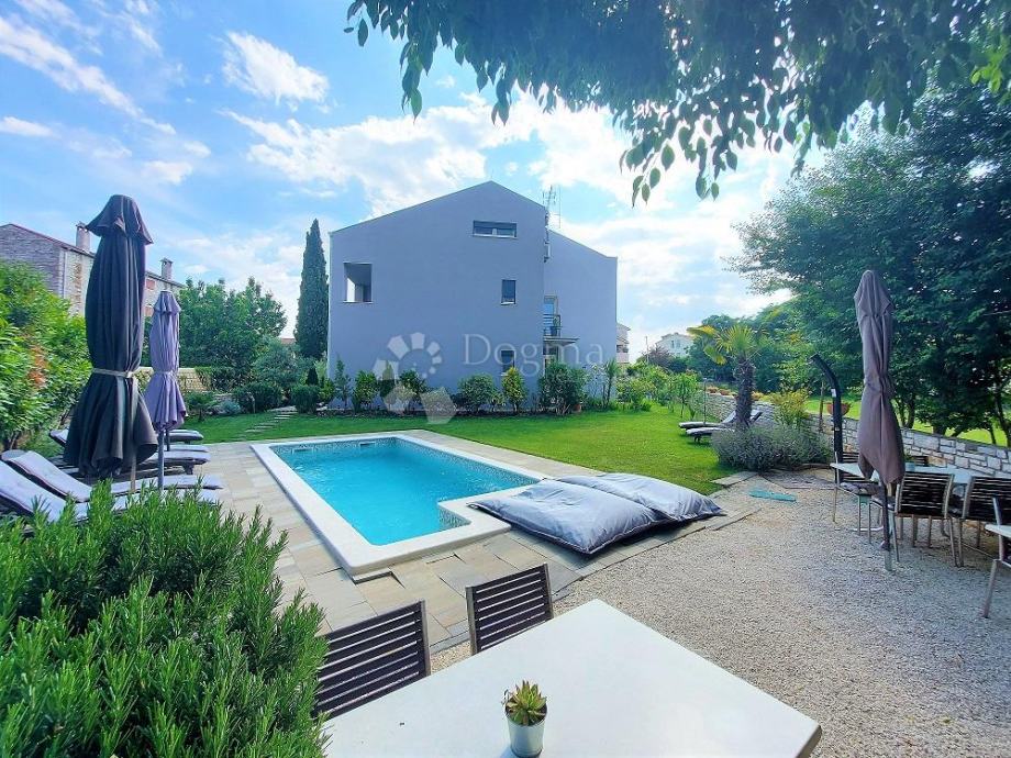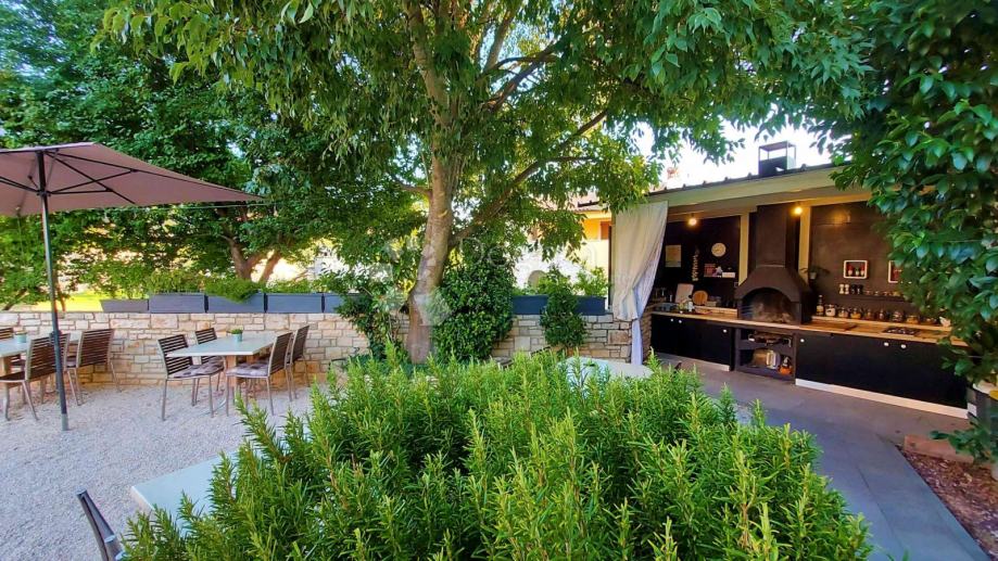 Na predivnoj okućnici punoj zelenila i bilja nalazi se zajednički bazen i ljetna kuhinja koja nudi mir i opuštanje na sunčalištu uz roštilj i vrt (koji ima automatsko navodnjavanje).