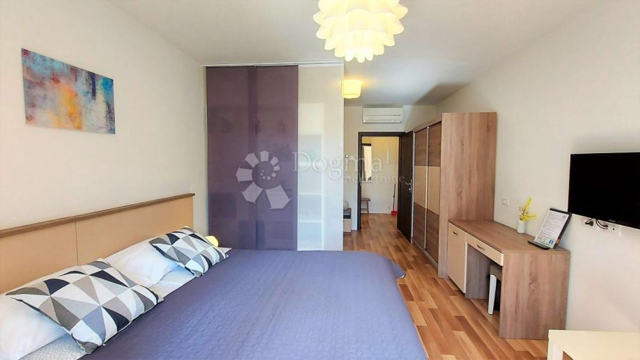 Na posljednjem katu (visoko potkrovlje) se nalazi apartman veličine 75 m² koji se sastoji od ulaznog hodnika, dnevnog boravka sa kuhinjom i blagovaonom, jedne spavaće sobe, kupatila i terase/balkona. Bitno je naglasiti da se na istom katu nalazi krovna terasa veličine cca 60 m2 koja nudi potpuni mir i intimu sa koje se pruža veoma lijep pogled na okruženje i more.