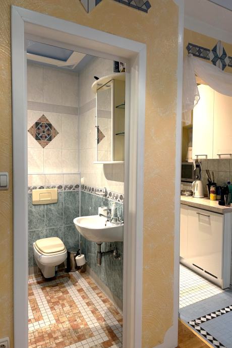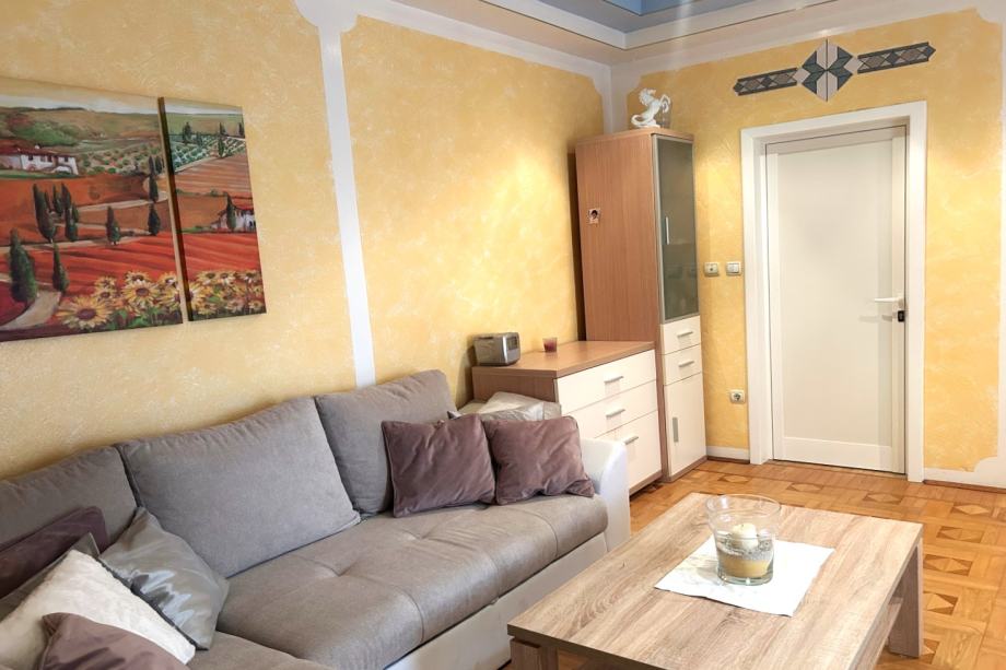 Odmah useljiv, namješten apartman s jednom spavaćom sobom, kupaonicom, kuhinjom i prostranim dnevnim boravakom te verandom na ulazu.
