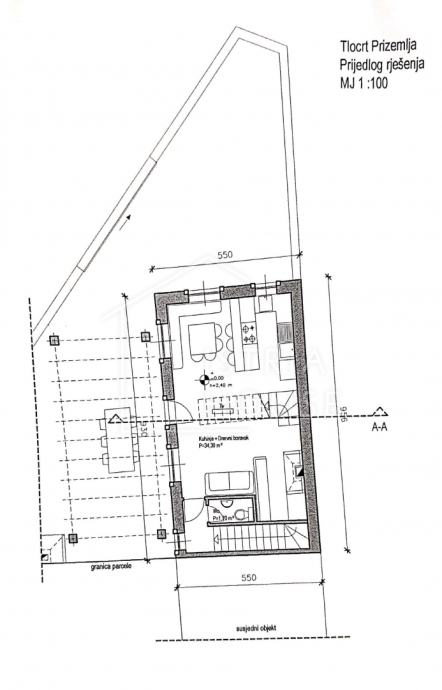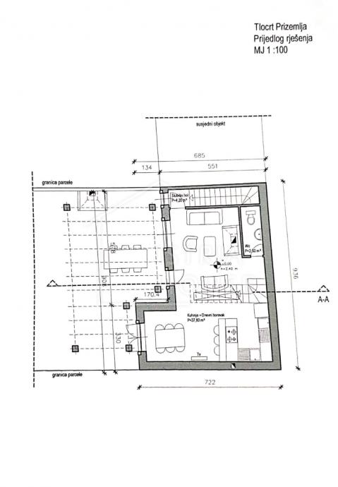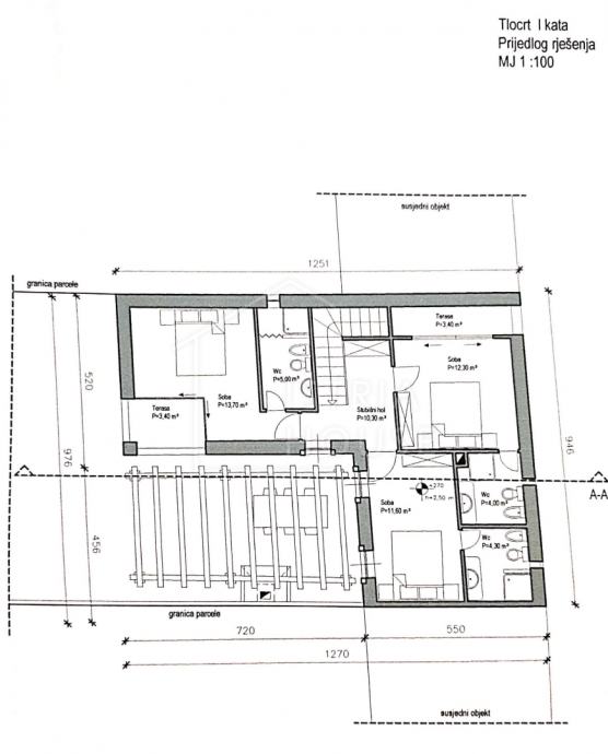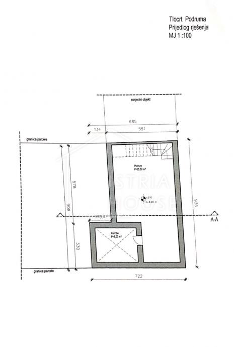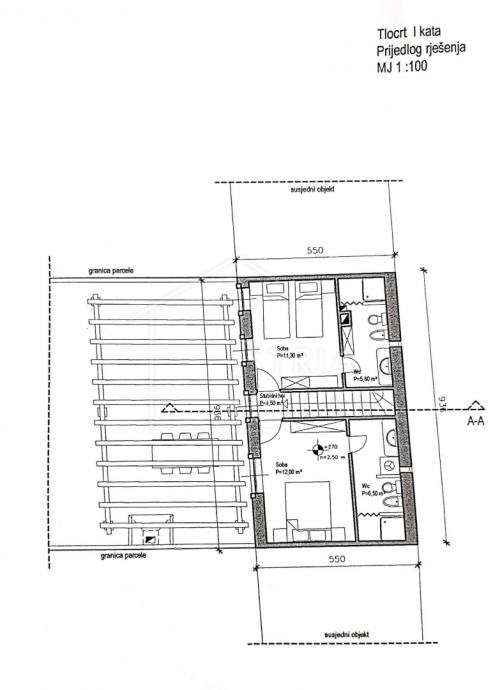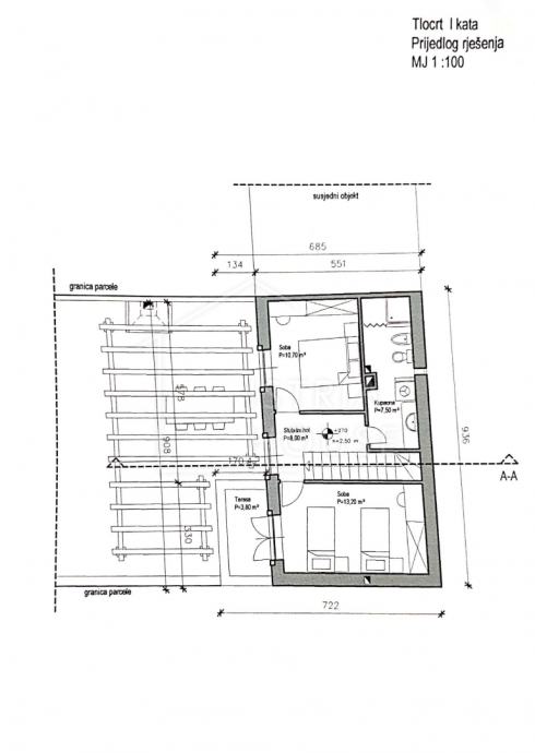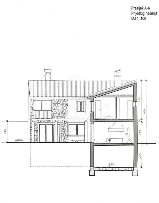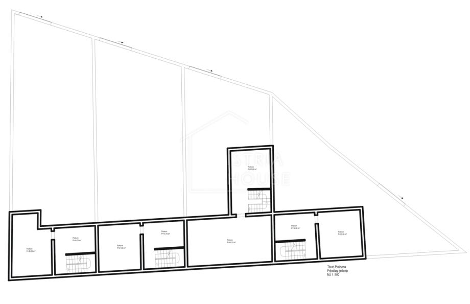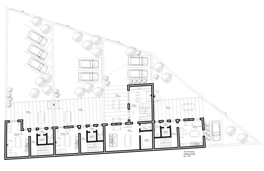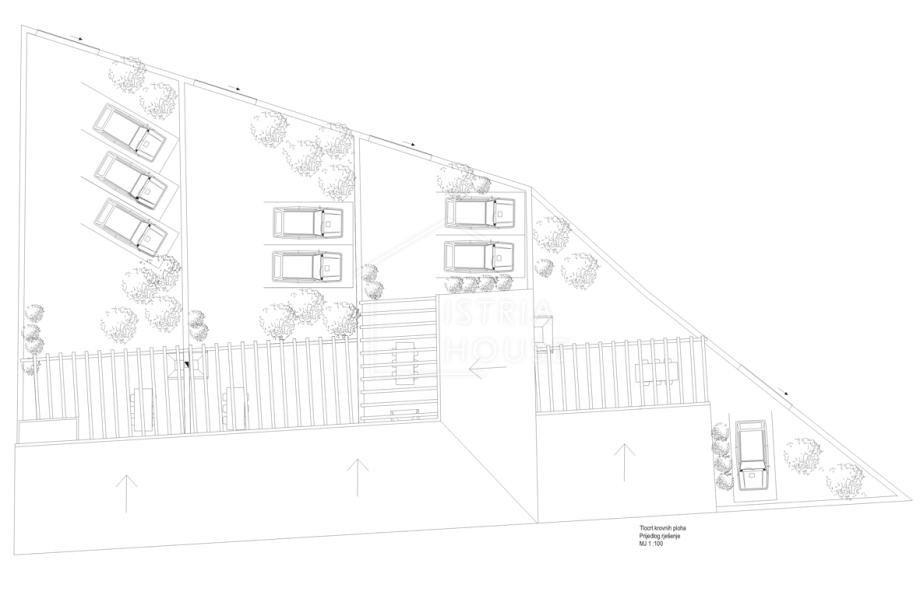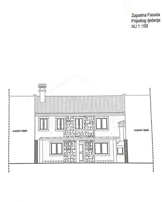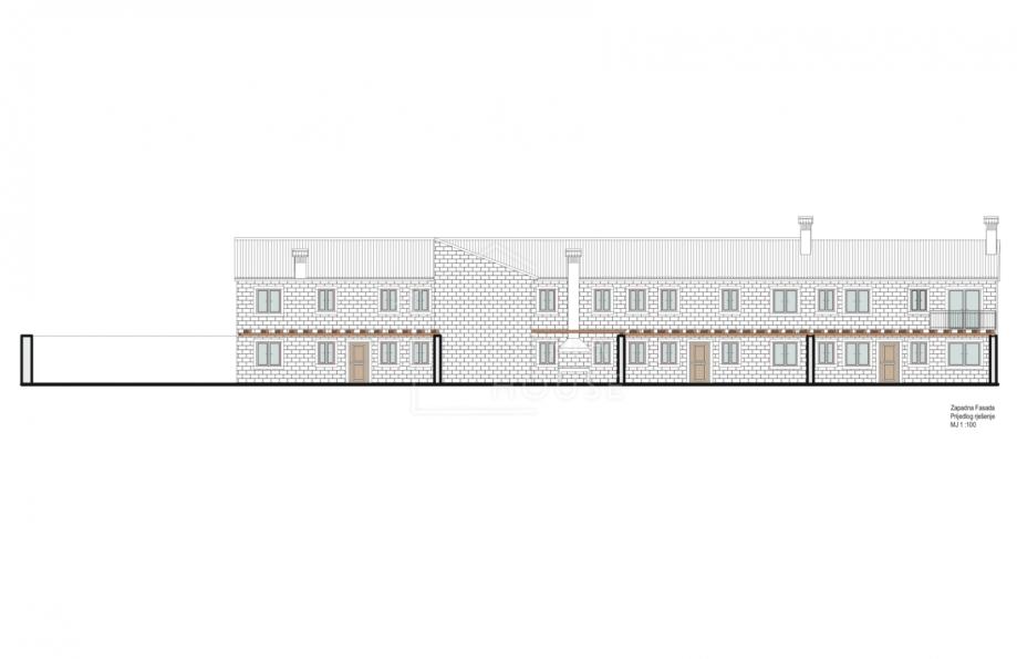 Na parceli od 1813m2 na kojem se nalaze zidine od četiri kuća pripremljen je projekt za obnovu istih i izgradnju 4 kuća za odmor sveukupne stambene površine od cca 567m2.