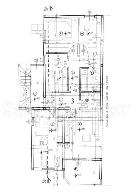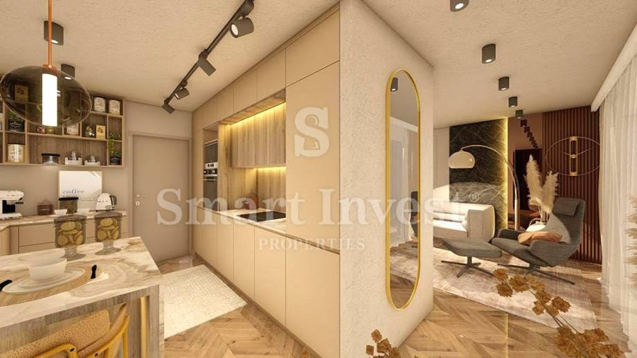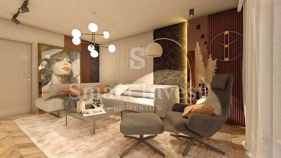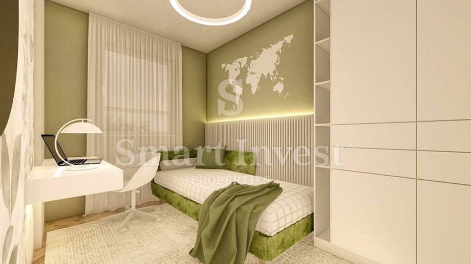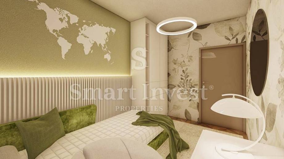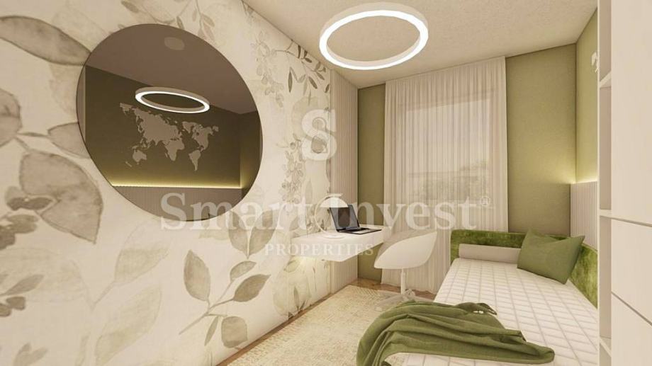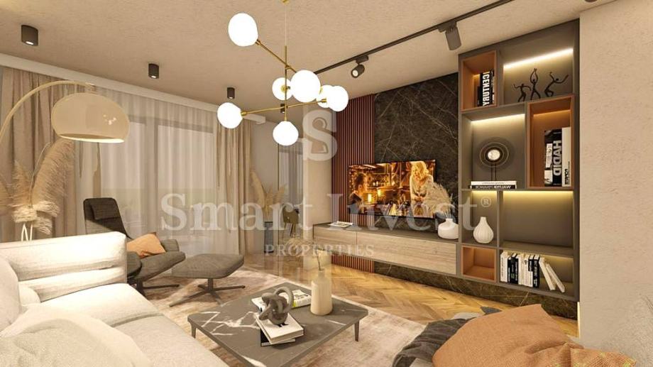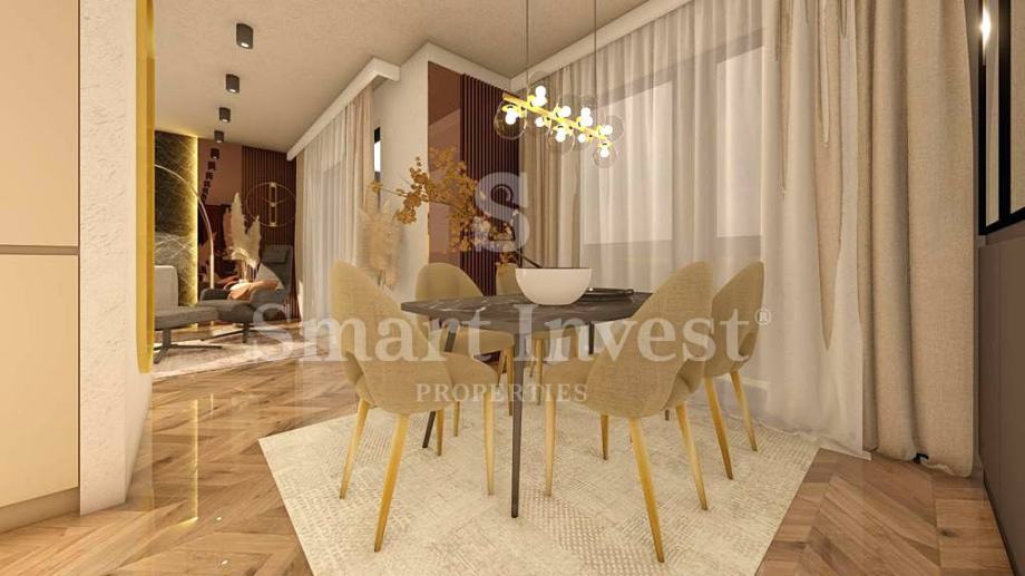 Stan se nalazi na 2. katu te sastoji od ulaznog hodnika, dnevnog boravka, kuhinje s blagovaonicom, tri spavaće sobe, dvije kupaonice i lođe površine 10 m2. Stanu pripadaju 2 parkirna mjesta , garaža i spremište.