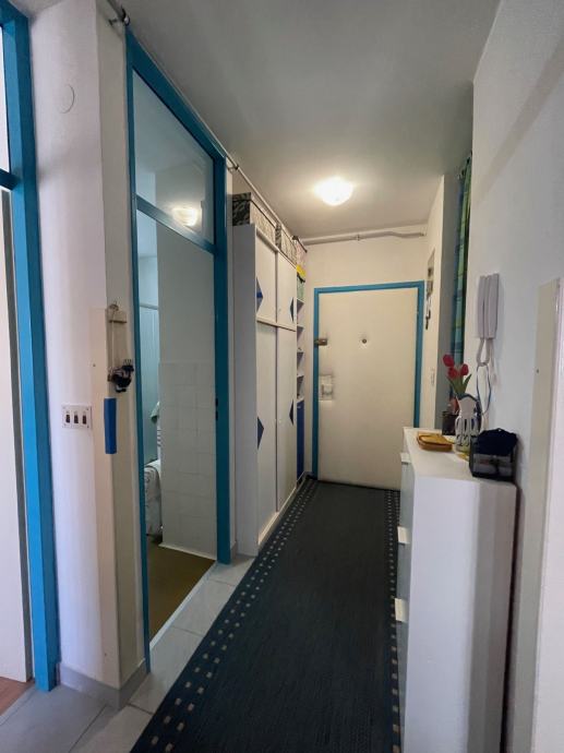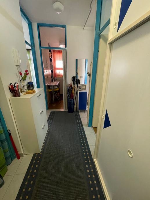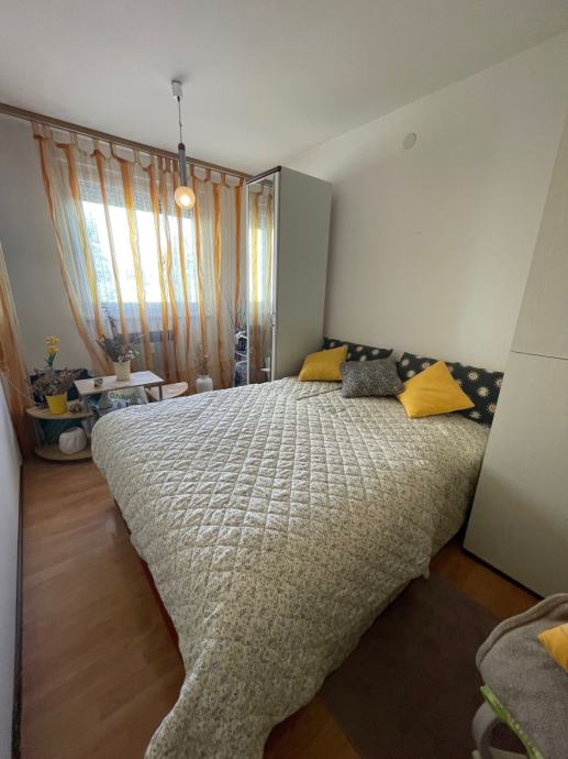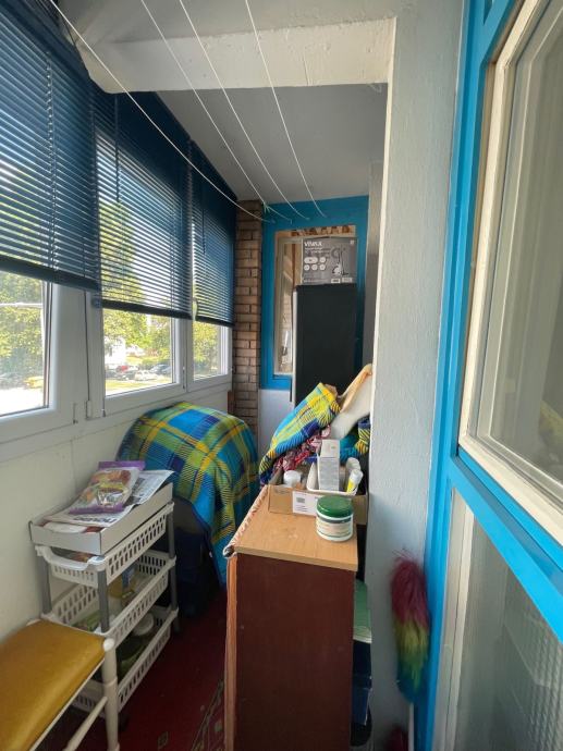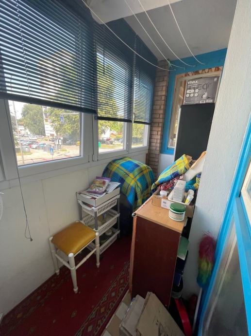 Stan se sastoji od hodnika, smočnice, kupaonice (tuš), kuhinje, dnevnog boravka sa izlazom na loggiu (zatvorena pvc prozorima), te spavaće sobe.