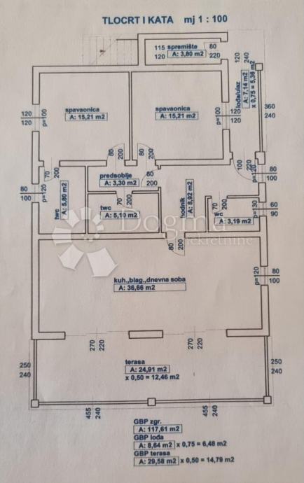 Apartman 2S+DB, 117m2, jednoetažni, zauzima cijeli prvi kat.