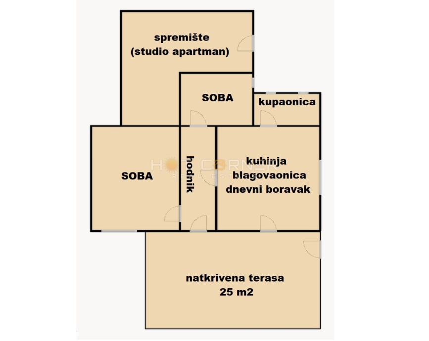 sobe, kuhinje s blagovaonom i dnevnim boravkom, kupaonice, hodnika,