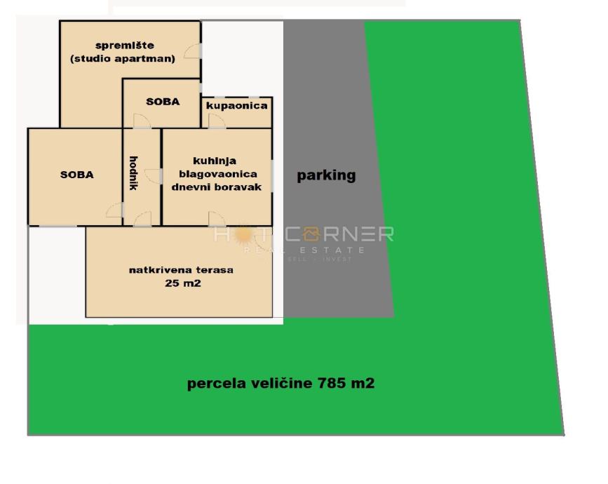 prizemnica, stambene površine 120 m2.Kuća se sastoji od 2 spavaće