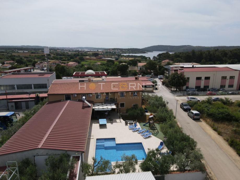 Na mirnoj i intimnoj lokaciji u Banjolama, Medulin; izoliranoj od pogleda i buke smjestila se ova apartmanska kuća od 500m2 ( prizemlje 250m2, prvi kat 250m2) na zatvorenoj parceli od 800m2. Kući u Banjolama pripada i 225 m2 hale koja je trenutno neiskorištena, a može se iskoristiti i kao zatvoreni wellness te pripojiti bazenu. Nadalje, kako se kuća nalazi u K1 zoni ( poslovna zona, pretežito trgovačka ) te nije u potpunosti izgrađena može se nadograditi. Dozvoljena izgrađenost je 50%, a trenutno je negdje oko 37% iskorišteno. Kuća ima dvije etaže u stambenom dijelu i jednu etažu u dijelu hale, a može se izgraditi 3 etaže tako da i tu ima prostora i mogućnosti.