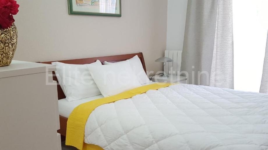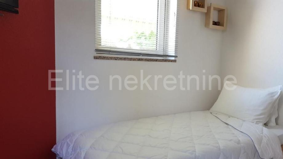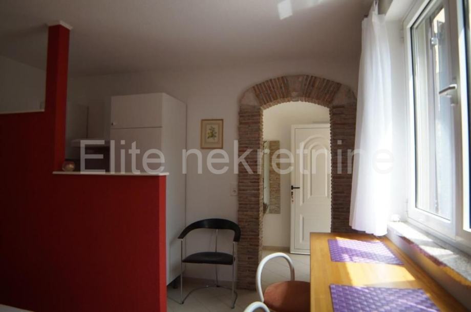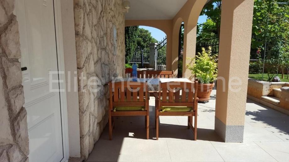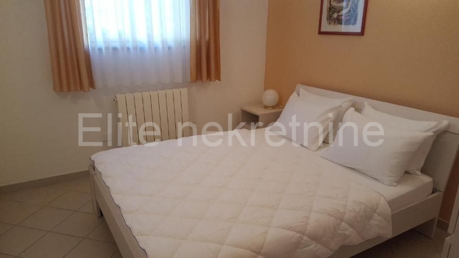 Ova apartmanska kuća se nalazi zadnja u redu u slijepoj ulici i okružena je prirodom, samo 300 metara od plaže.
