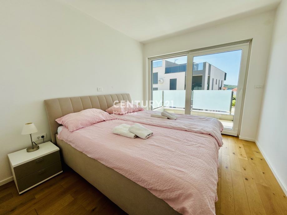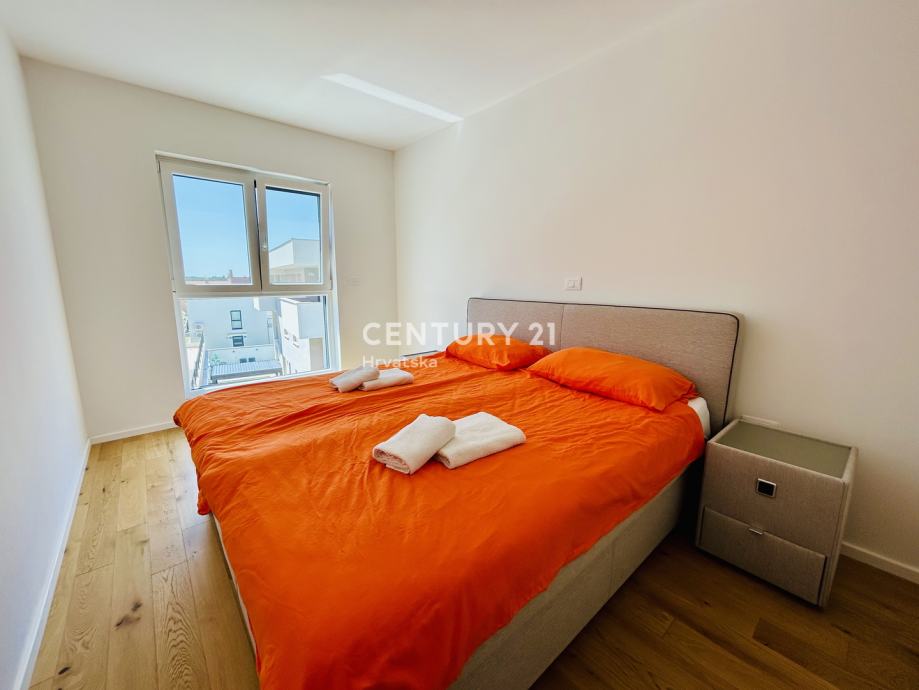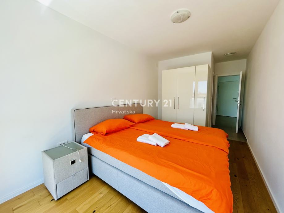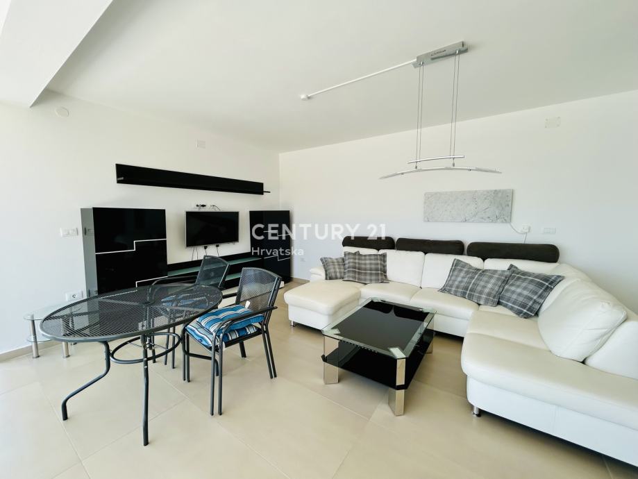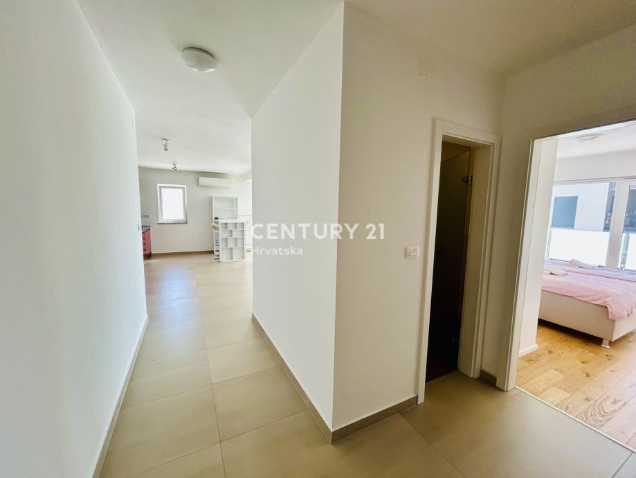 Netto korisna površina stana je 95.90 m2. Jugozapadna orijentacija osigurava obilje prirodne svjetlosti tijekom cijelog dana, ističući vrlo sunčanu atmosferu prostora. Iz dnevnog boravka se izlazi na prostrani balkon, s kojeg se pruža lijep pogled na more i okolnu prirodu.
