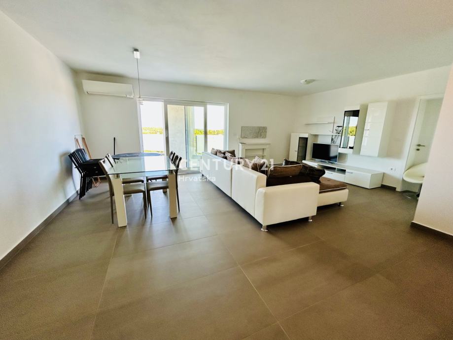 Netto korisna površina stana je 82.95 m2. Jugozapadna orijentacija osigurava obilje prirodne svjetlosti tijekom cijelog dana, ističući vrlo sunčanu atmosferu prostora. Iz dnevnog boravka se izlazi na prostrani balkon, s kojeg se pruža lijep pogled na okolnu prirodu.