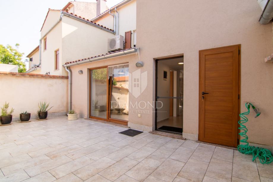 Renovacija kuće izvedena je s posebnom pažnjom prema izvornim materijalima i tradicionalnoj istarskoj arhitekturi, pa tako prevladavaju elementi kamena, drvene grede i pažljivo birani detalji koji prostoru daju karakter i šarm. Vanjski prostor obogaćen je lijepo popločanom terasom – savršenom za opuštanje uz čašu vina ili druženja tijekom toplih ljetnih večeri.