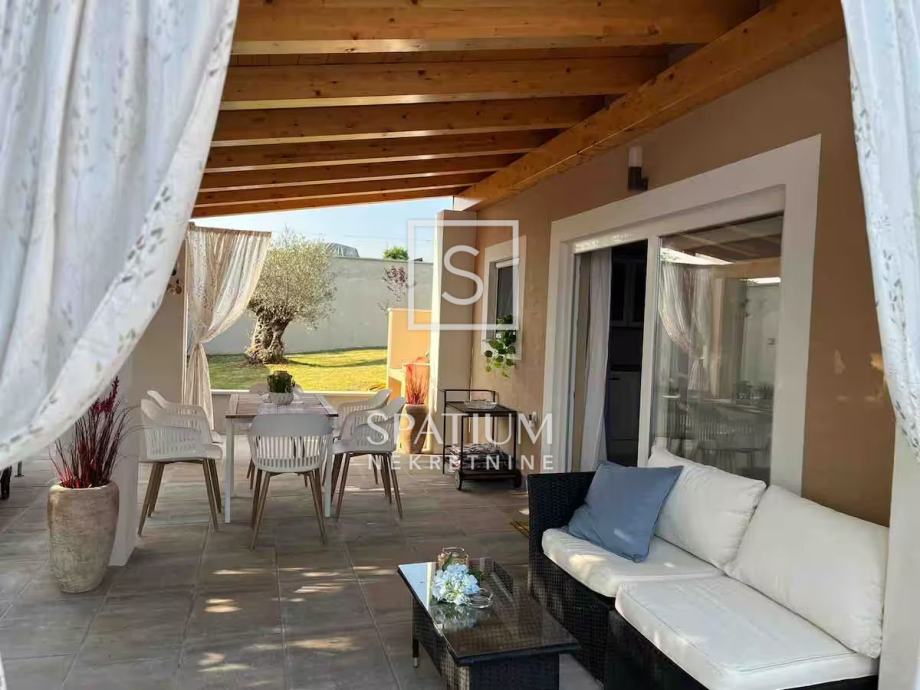 Okućnica je u potpunosti ograđena, uređena i pruža dovoljno prostora za razne sadržaje. Na raspolaganju je više parkirnih mjesta, od čega su dva natkrivena.
