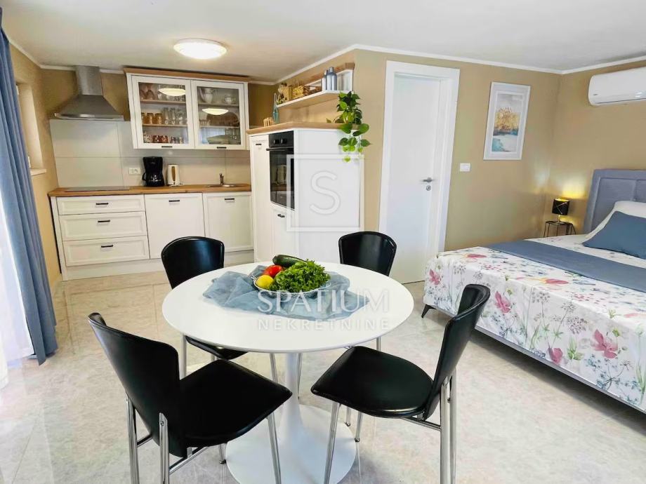 Prizemlje čini manji stan – garsonijera, koji se sastoji od kuhinje s blagovaonicom, kupaonice i spavaćeg dijela. Poseban ulaz pruža dodatnu privatnost i mogućnost odvojenog korištenja. U stanu se koristi grijanje putem klima invertera.