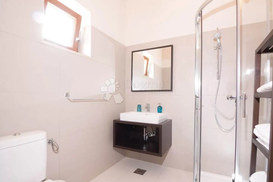 Na katu su smještene dvije komforne spavaće sobe, svaka sa svojom privatnom kupaonicom, pružajući maksimalnu udobnost i privatnost svim članovima obitelji ili gostima.