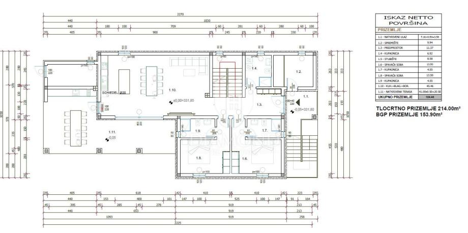 Parcela od 3012 m² pravilnog je oblika, a građevinski dio obuhvaća 812 m². Do nje su već dovedeni priključci za vodu i struju, što olakšava buduću gradnju. Projektom je predviđena montažna kuća čija je posebnost u nosivim okvirima izrađenim od čelika s Magnelis premazom – inovativnim materijalom koji jamči dugotrajnost, otpornost na koroziju i ekološku prihvatljivost. Kuća je osmišljena s naglaskom na suvremeni standard i trajnost, pružajući budućim vlasnicima siguran i dugoročan dom.