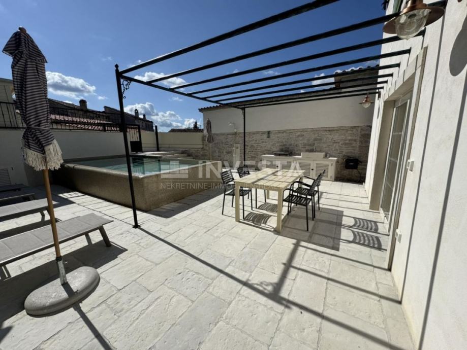 Predstavljamo vam na prodaju novu nekretnina koja nalazi se na zemljištu od 440 m2 sa opremljenom dvoetažnom novom kućom s bazenom, koja se nalazi u malom mjestu u općini Barban. Kuća je neto površine 85 m2 smještena u mirnom i lijepom okruženju. Kuća se sastoji od prizemlja, open space dnevnog boravka, kuhinje, blagovaonice, vešeraja spavaće sobe i jedne kupaonice s izlazom u dvorište na natkrivenu terasu s direktnim pristupom na bazen i sunčalište.