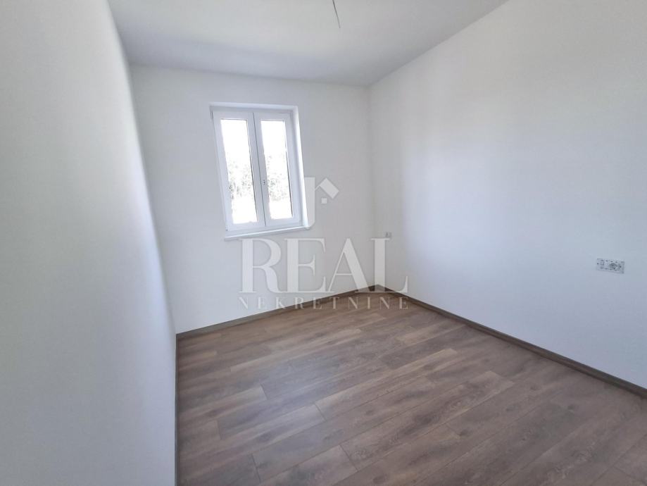 Stan u novogradnji u prizemlju površine 66 m2 koji se sastoji od kuhinje sa dnevnim boravakom ,dvije spavaće sobe, kupaonice, vešeraja i loggie. Stanu pripada parkirno mjesto koje je uračunato u cijenu i okućnica cca 50 m2 koja se dodatno naplaćuje ovisno o etažnom elaboratu.