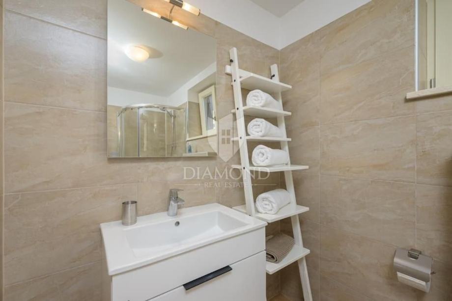 Na prvom katu su dvije spavaće sobe, svaka s vlastitom kupaonicom, te dvije velike terase s prekrasnim pogledom na more. U podrumu je smještena dodatna spavaća soba s kupaonicom, idealna za goste ili članove obitelji.