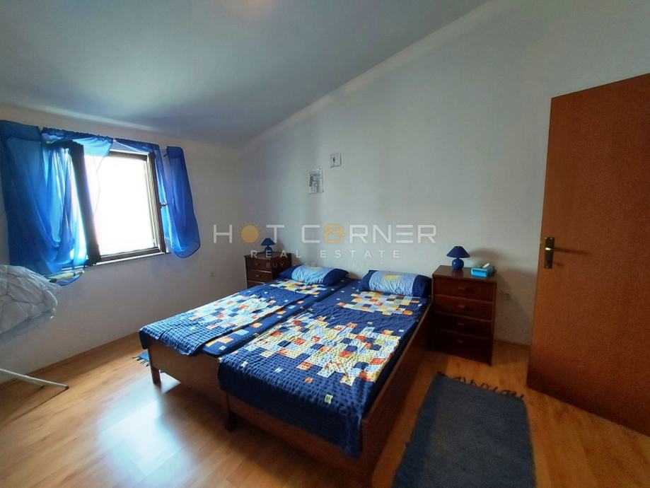 U ponudi apartman (kuća u nizu) površine oko 120 m2. Sastoji se od dnevnog boravaka i blagovaonce, kuhinje, 3 spavaće sobe, hodnika i garderobe, kupaonice te velike ljetne terase u kojoj se nalazi i ljetna kuhinja sa roštiljem. Ispred Apartmana je okućnica/vrt površine oko 25m2.