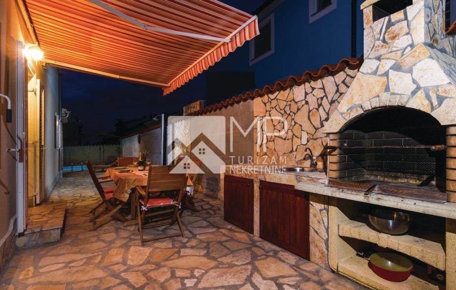 - Prizemlje: otvoreni dnevni boravak s izlazom na natkrivenu popločanu terasu, potpuno opremljena kuhinja s blagovaonicom, kupaonica i ostava. Natkrivena terasa i dvorište nude prostor za druženje, a u dvorištu se nalazi bazen od 25 m² i zidani roštilj.