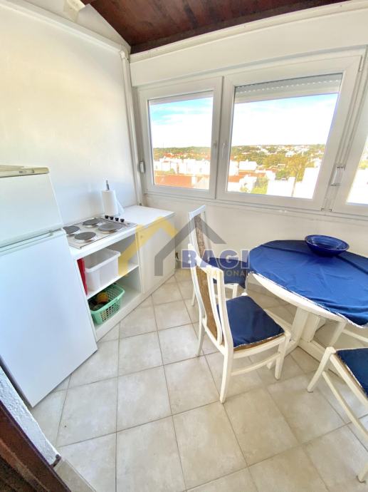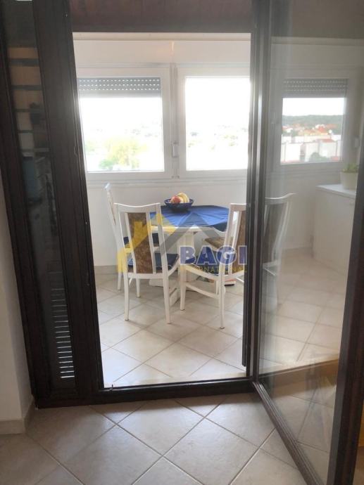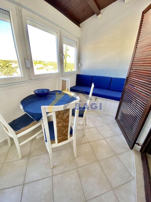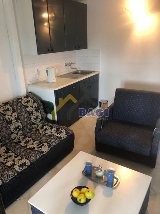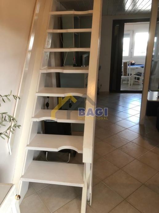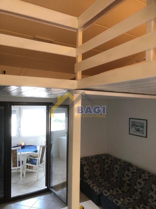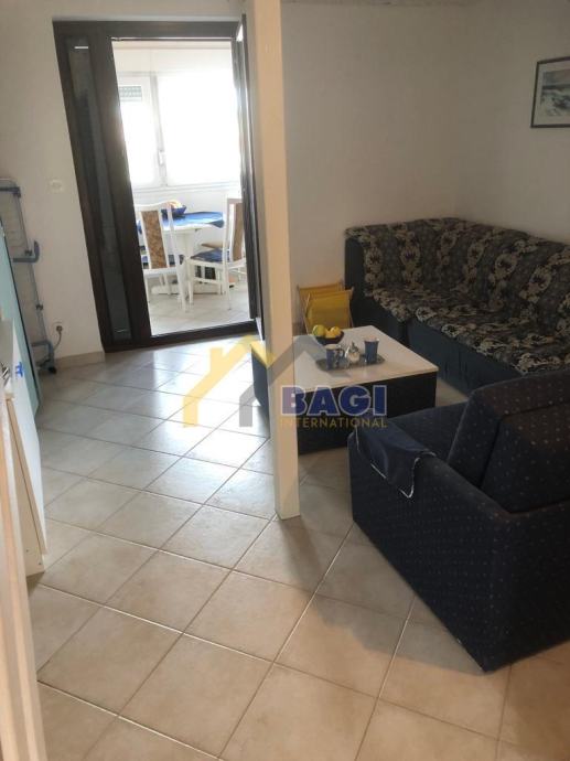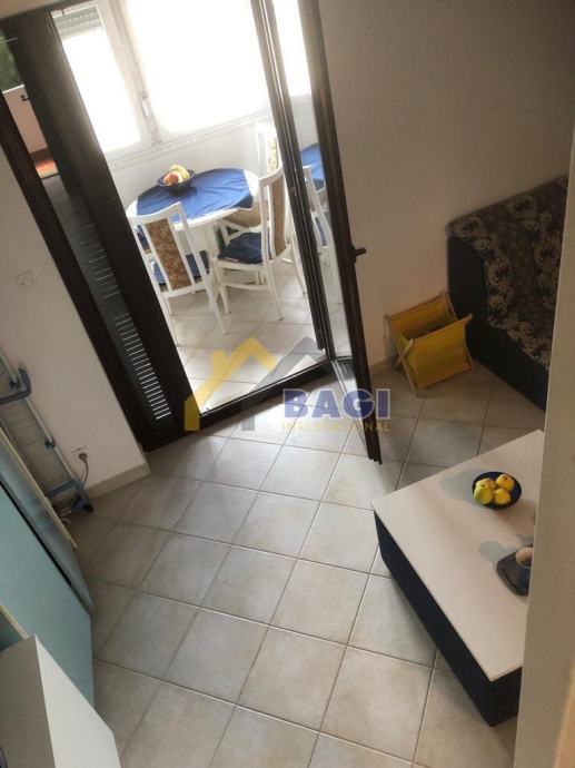 Apartman 32m2+12m2 galerije, nalazi se na 3. katu, sastoji se od kupaone, boravka, blagovaone sa kuhinjom, terase i galerije 12m2. Posjeduje parking mjesto. Udaljen 350m od mora. Čisto vlasništvo.