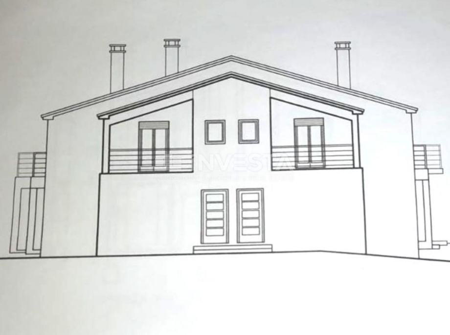 Na prodaju je građevinsko zemljište površine 640 m² u Barbarigi, sa izdanom građevinskom dozvolom za izgradnju tri stambene jedinice. Zemljište ima izdanu građevinsku dozvolu za projekt P+1, ukupne bruto površine 488 m², s neto korisnom površinom 366 m² i bazenom 34 m2.