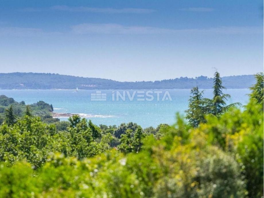 Barbariga, građevinsko zemljište s građevinskom dozvolom za gradnju tri stambene jedinice s pogledom na more.