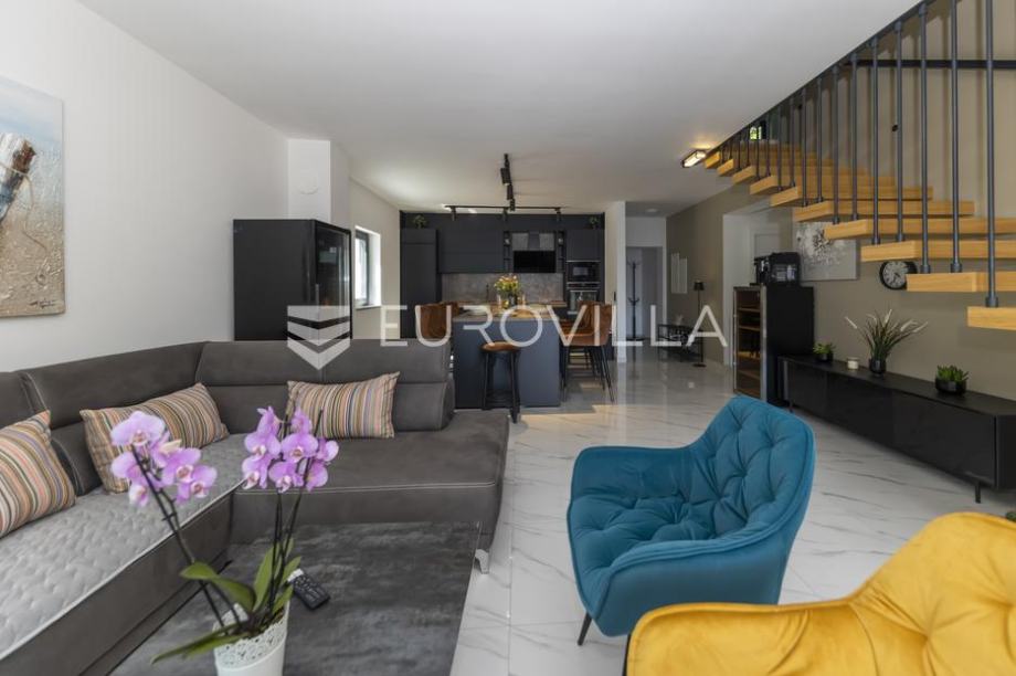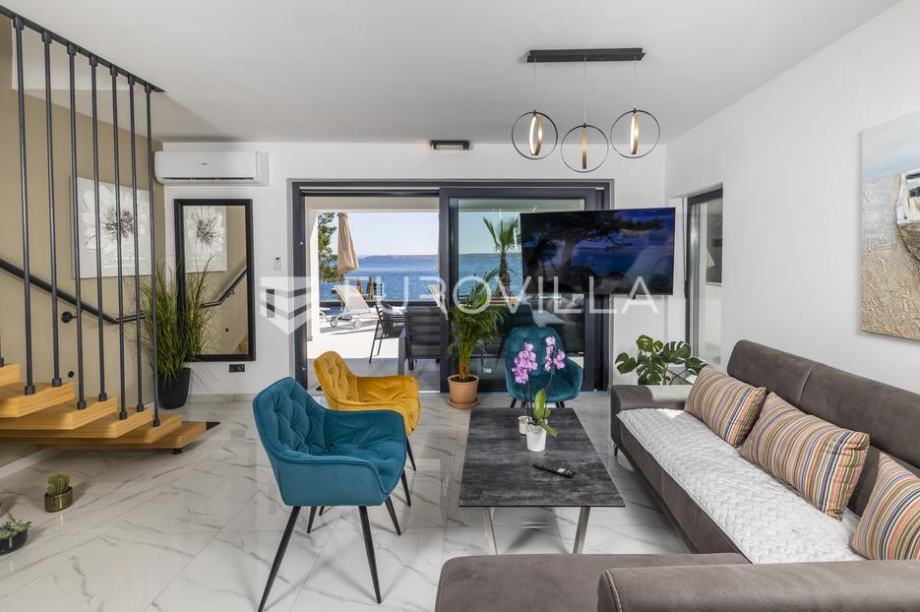 Na iznimno rijetkoj i traženoj lokaciji smještena je luksuzna vila površine 284 m², pozicionirana doslovno u prvom redu do mora. Ova nekretnina nudi potpunu privatnost, otvoren pogled na Jadran i vlastiti mol s puzavicom za sigurno spuštanje i dizanje broda savršeno rješenje za vlasnike plovila i ljubitelje nautike.Vila je osmišljena za udoban boravak većih obitelji ili društava te raspolaže sa šest prostranih spavaćih soba, svaka s vlastitom kupaonicom i izlazom na balkon s pogledom na more.Ukupan kapacitet smještaja je 12 osoba, uz prostrani dnevni boravak s kaminom koji je povezan na sustav podnog grijanja, stvarajući ugodnu atmosferu tijekom cijele godine.U eksterijeru se nalazi bazen površine 32 m² s morskom vodom, jacuzzi zona, sauna te privatna teretana, što ovu nekretninu svrstava u kategoriju vrhunskog luksuza.Direktan pristup moru dodatno naglašava ekskluzivnost lokacije.Tehnička opremljenost vile zadovoljava najviše standarde: podno grijanje u svim prostorijama, priprema za dizalicu topline, solarni sustav za grijanje vode, PVC stolarija s trostrukim izo staklom te kvalitetna klimatizacija. Moderna i potpuno opremljena kuhinja, kao i pažljivo biran namještaj, osiguravaju maksimalnu udobnost i funkcionalnost.Lokacija je izuzetno praktična u blizini je Zračna luka Zadar, što omogućuje brzu povezanost s inozemstvom, dok su Plitvička jezera i Kornati lako dostupni za izlete i istraživanje prirodnih ljepota Hrvatske.Ova nekretnina predstavlja savršen spoj privatne luksuzne rezidencije i izuzetne investicijske prilike za turistički najam.Vile u prvom redu do mora s molom iznimno su rijetke na tržištu, što ovu ponudu čini posebno vrijednom.Za dodatne informacije i dogovor oko razgledavanja, stojimo na raspolaganju....