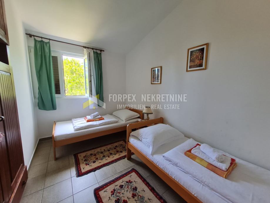 Na atraktivnoj i mirnoj lokaciji u mjestu Barić draga prodaje se kuća udaljena od mora svega 50-ak metara. Kuća se nalazi na parceli površine 700 m2 koja je uređena mediterasnkim biljem, a ukupna stambena površina kuće je 95 m2. Sastoji se od ulaznog hodnika, dvije spavaće sobe, kupaonice, dnevnog boravka, blagavaone, kuhinje i dvije prostrane terase sa kojih se pruža pogled na more, i garaže. Nedavno je izvršeno uređenje kuće kako izvana tako i iznutra. Postavljena je nova pvc stolarija, sa aluminijskim griljama. Klima uređaj za grijanje i hlađenje. Postoji mogućnost grijanja na kruta goriva. Kuća je potpuno namještena i kao takva se prodaje. Do kuće se prilazi asfaltiranim putem, a do same plaže vodi uređena staza.