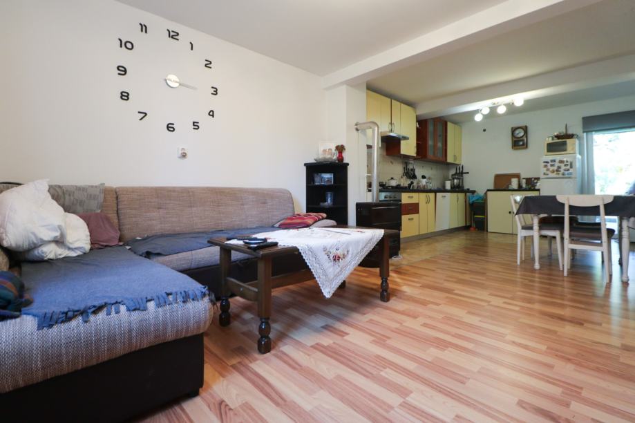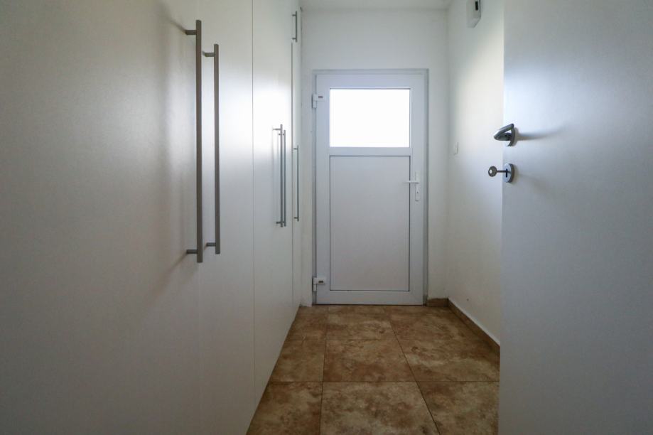 Stan ima 60 m2, a sastoji se od hodnika, open space dnevnog boravka s kuhinjom i blagovaonicom, kupaonice, veće spavaće sobe, velike terase, vanjske kuhinje i spremišta. Dvorište je površine 430 m2 te je savršeno za uživanje u prirodi na svježem zraku. Terasa i vanjska kuhinja su idealni za boravak tijekom toplijih dana te čine ovaj stan jedinstvenim.