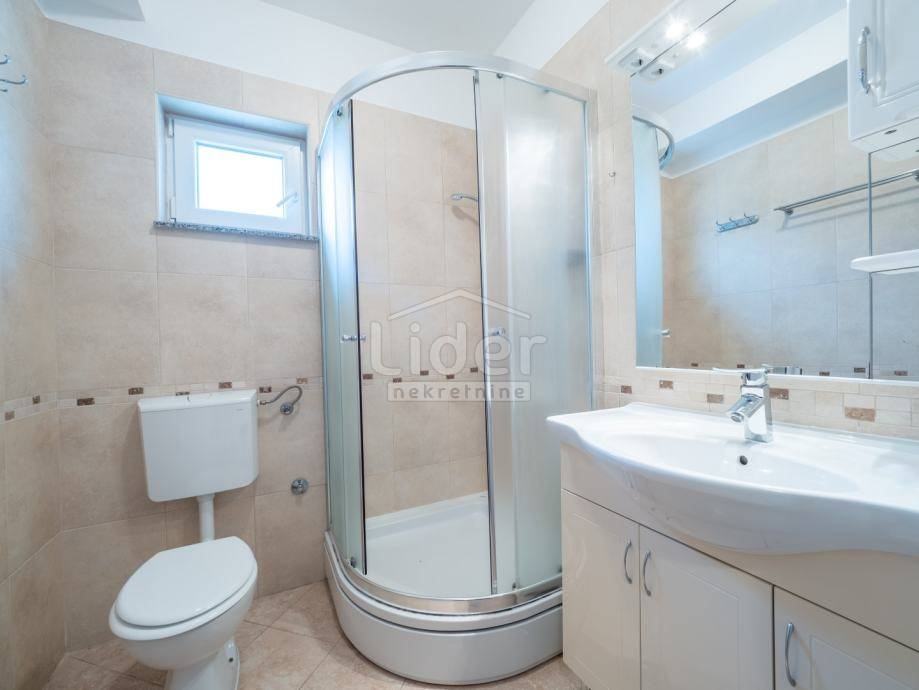Baška, na izvrsnoj poziciji, daleko od ljetne gužve i vreve na ponudi imamo dva apartmana koji se prodaju zajedno. Prvotno to je bio dvoetažni stan koji je prenamijenjen u dva apartmana: 53,36m2 + 44,50m2. Jedan se nalazi u prizemlju i ima terasu, a drugi je na 1.katu i ima lođu. Nekretnina ima ukupno 97,86 m2, a sastoji od: predprostora,