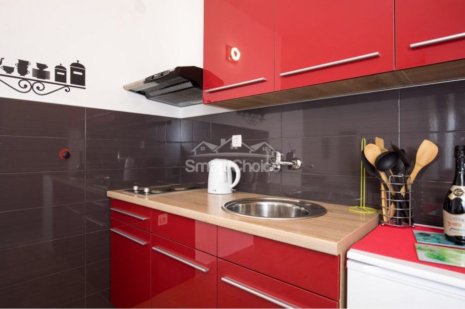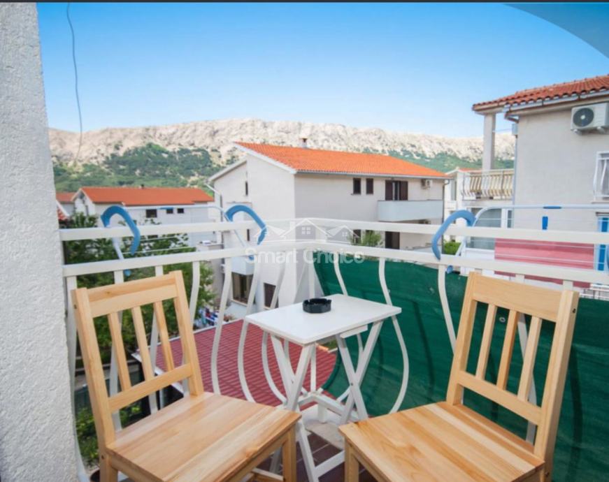 Baška - novouređeni apartman, 150m od mora. Sastoji se kuhinje s blagovaonom, dnevnog boravka, spavaće sobe, kupaone sa WC-om i balkona.