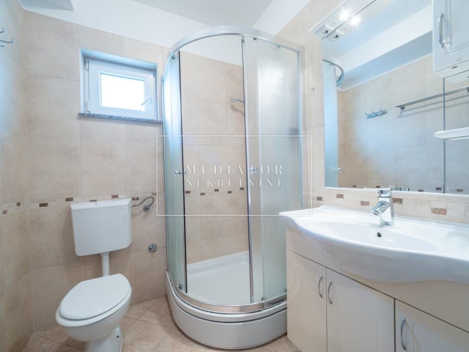 Uz kuću dolazi i uređena okućnica površine 121 m², koja nudi razne mogućnosti – od izgradnje bazena, postavljanja sjenice, do stvaranja vlastitog mediteranskog vrta ili prostora za opuštanje i druženje na otvorenom. Nekretnini pripadaju i dva parkirna mjesta, što je dodatna prednost u ljetnim mjesecima kada je parkiranje u blizini plaže često izazov.