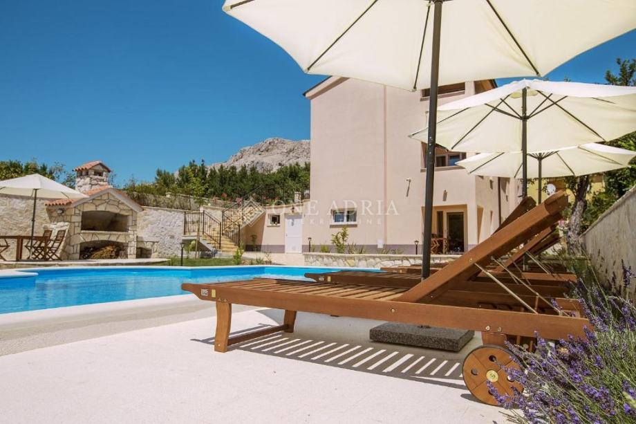 Na prodaju je luksuzna vila smještena u mirnom i slikovitom mjestu Baška, na otoku Krku. Baška je jedno od najpoznatijih turističkih odredišta na otoku, poznata po svojoj dugoj pješčanoj Veloj plaži, jednoj od najljepših na Jadranu, te po važnom kulturnom spomeniku – Bašćanskoj ploči koja se nalazi u obližnjem Jurandvoru.