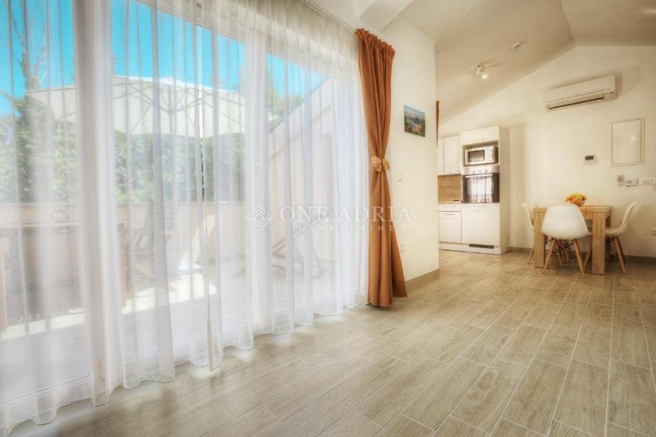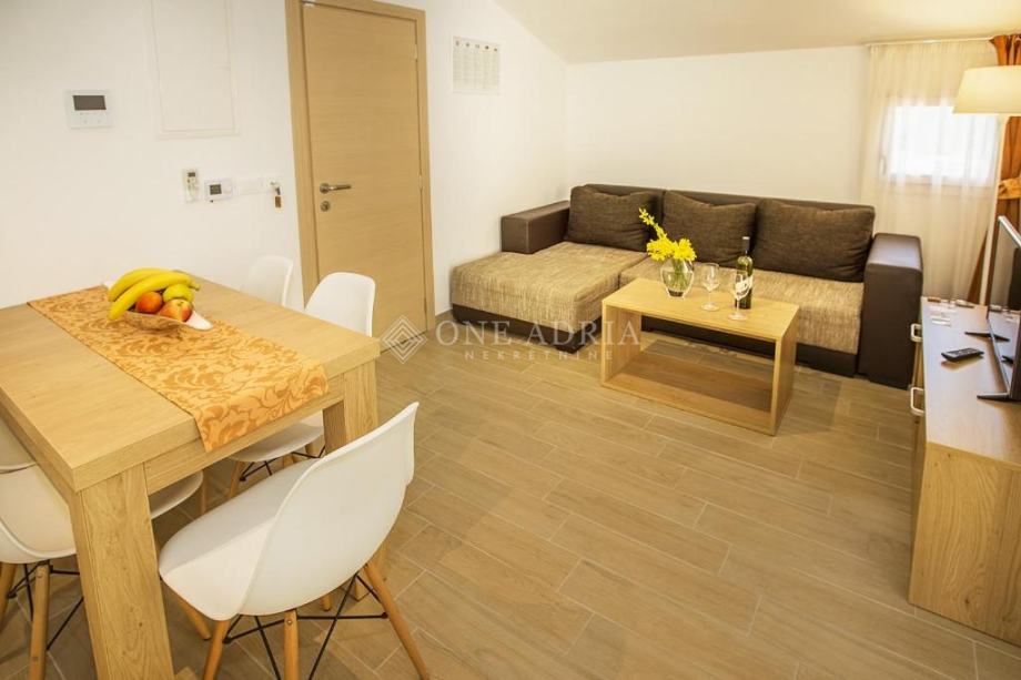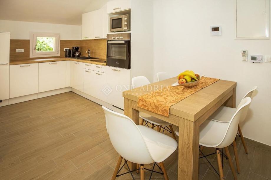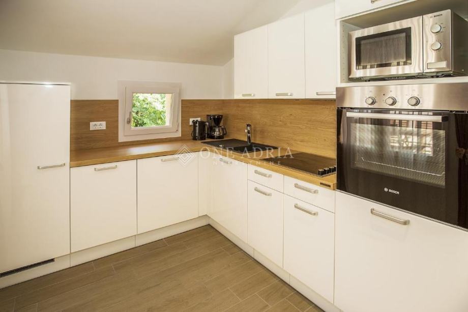 Posebna pažnja posvećena je svakom detalju – od odabira keramike i sanitarija do završnih dekorativnih elemenata. Korišteni su materijali i oprema renomiranih proizvođača, što doprinosi luksuznom dojmu i dugotrajnoj kvaliteti prostora. Namještaj i svi kućanski aparati uključeni su u cijenu, čime je nekretnina odmah spremna za korištenje ili nastavak uspješnog turističkog poslovanja.