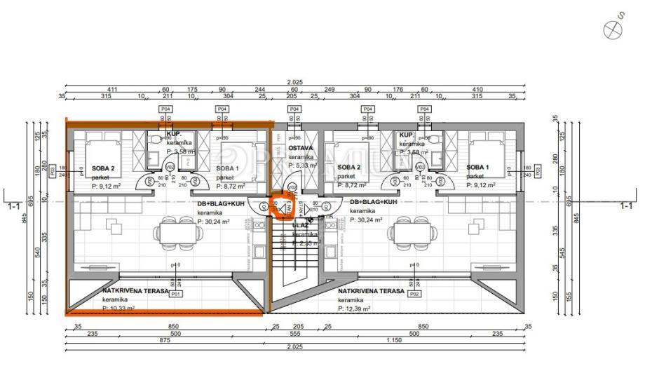 Apartman površine 62 m2 nalazi se na katu novoizgrađenog objekta, katnosti prizemlje i prvi kat, s ukupno četiri stambene jedinice.