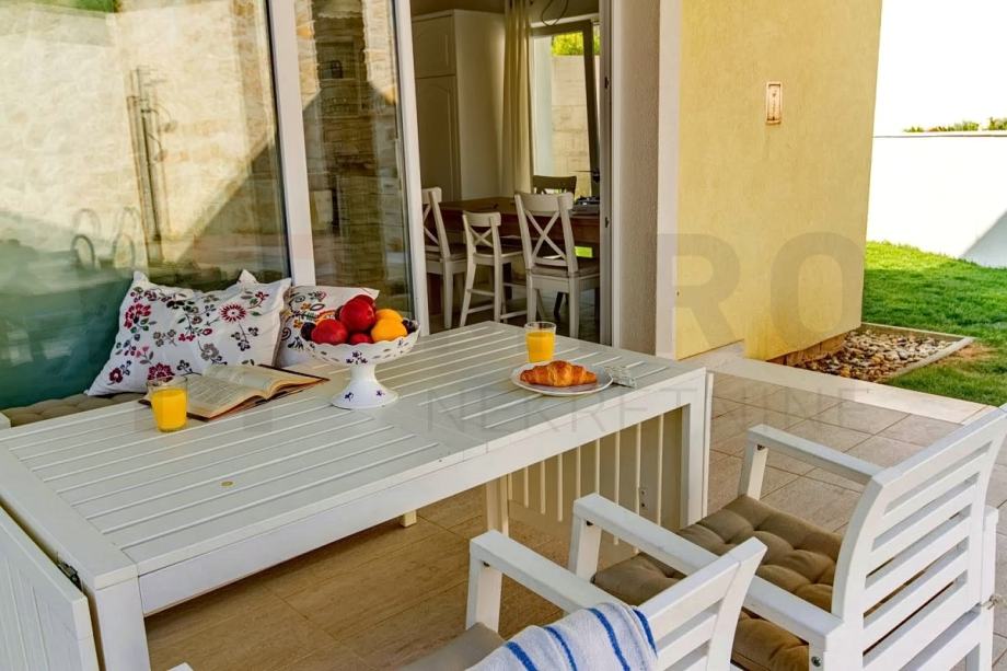 Otok Krk, Baška okolica, dvojna kuća s bazenom na mirnoj lokaciji . Kuća stambene površine 120 m2 je katnost, prizemlje i kat. Prostrano prizemlje obiluje svjetlom te se sastoji od hodnika, wc za goste, ostave, kuhinje, blagovaonice i dnevnog boravka s pristupom na terasu i okućnicu s bazenom i sunčalištem. Prizemlje i kat kuće povezani su unutarnjim stepenicama, na katu se nalaze tri spavaće sobe, od kojih dvije imaju izlaz na terasu s koje pruža pogled na malo otočno mjesto i dvije kupaonice. Visoka kvaliteta gradnje i vrhunska oprema. Kuća je kompletno namještena i spremna za useljenje. Bazen ima dizalicu topline za grijanje bazenske vode. Dvojna kuća ima na predmetnoj okućnici parking za dva vozila. Nekretnina je u vlasništvu fizičke osobe pa je kupac prilikom prijepisa njenog vlasništva na svoje ime u obvezi plaćanja poreza na promet u visini 3%. Prodavatelj kuće jamči kompletnu i urednu dokumentaciju. Posjetite nas i pronađite kvadrat vašeg doma!