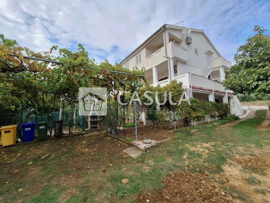BAŠKA,OTOK KRK, Prodajemo odličnu dvojnu kuću u blizini mora. Kuća se sastoji od prizemlja i dva stana. Na prizemlju je dvosoban stan s dnevnim boravkom i velikom natkrivenom terasom, na 1 katu nalazi se također dvosoban stan s terasom dok su na drugom katu dva jednosobna apartmana s dnevnim boravkom. Jedan apartman ima terasu dok drugi nema. Stanovi na 1 i 2 katu imaju sa terasa lijepi pogled na more. Uređena okućnica, 6 parkirnih mjesta. Apartmani su uređeni i namješteni idealni za bavljenje turizmom. Uz kuću su još dvije prostorije koje služe kao spremišta. Odlična investicija.Sve ostale informacije možete dobiti u agenciji.
