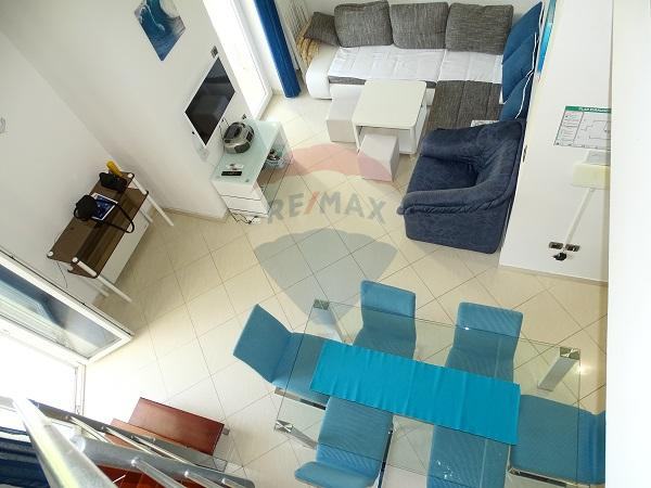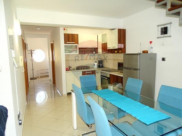 Baška - na lijepoj, ravnoj lokaciji, prodajemo ovaj prekrasan dvoetažni apartman neto površine 97m2, ali s obzirom da ima tri terase površina mu je i preko 100m2. Apartman se nalazi na drugom katu, sastoji od kuhinje s dnevnim boravkom, dva balkona, dviju spavaćih soba, te u galeriji ima još jedno kupatilo, sobu i lijepu veliku terasu s koje je i pogled na more. Također prekrasan pogled na zelenilo i brda. Apartman je u potpunosti renoviran, moderno namješten, prozračan, održavan i uredan. Ima jedno parkirno mjesto u vlasništvu i malu okućnicu na kojoj je roštilj i natkrivena terasa. Blizina mora, cca 120m udaljenost. Uredna dokumentacija, uporabna dozvola, etažirana zgrada. Apartman je odlična investicija za turizam, s obzirom da je blizu mora i lijepo uređen, jako se dobro iznajmljuje. Agent u Baški 0916413143 lj.magasic@remax-krk.hr