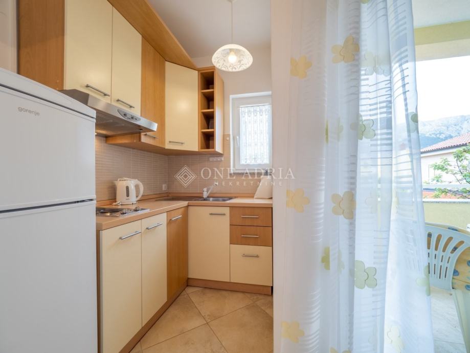 Uz stan dolazi i vlastito parkirno mjesto, a okruženje je mirno, uredno i lako dostupno. Blizina plaže, trgovina i ostalih sadržaja čini ovu nekretninu praktičnim i atraktivnim izborom za život ili odmor.