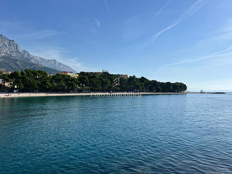 Građevinsko zemljište površine 964 m2 u Baškoj Vodi sa lijepim pogledom na more. Po Urbanističkom planu Baške vode ovo zemljište se nalazi u građevinskoj zoni te se dozvole za izgradnju mogu tražiti odmah.