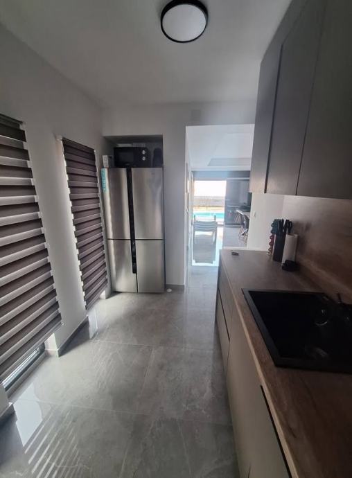 Šarmantna, unikatna kuća sastoji se od prostranog dnevnog boravka povezanog s kuhinjom i blagovaonicom, tri spavaće sobe te dvije kupaonice. Interijer je prozračan, suvremen i kvalitetno opremljen.