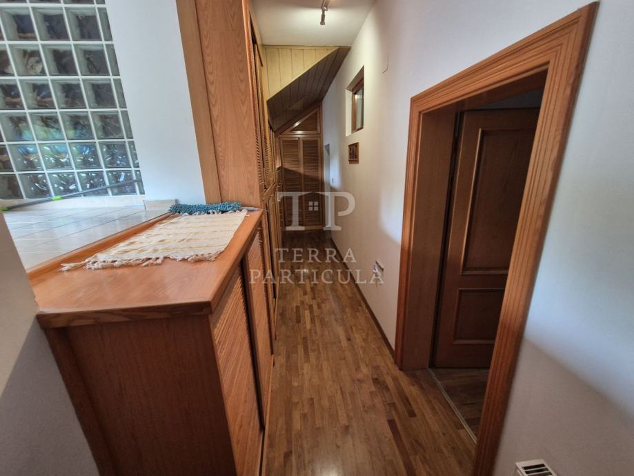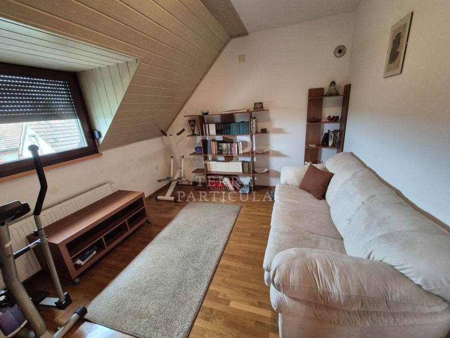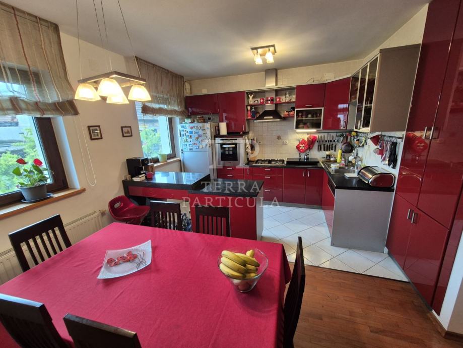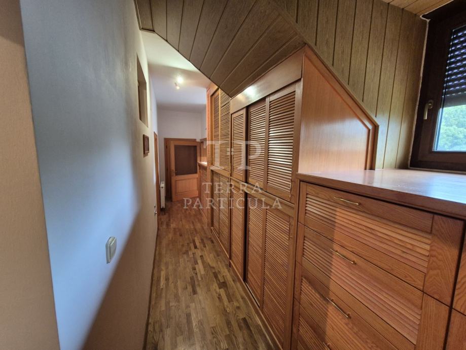 U suterenu kuće nalazi se prostor za više automobila, tri spremišta, kotlovnica i kupaonica, dok su u prizemlju dnevni boravak, kuhinja s blagovaonom, spavaća soba, kupaonica i prostrana natkrivena terasa. Na prvom katu se nalaze četiri spavaće sobe i kupaonica. Od priključaka tu su struja, voda, plin i kanalizacija. Centralno grijanje je na plin, a u dnevnom boravku je i kamin na drva. Prošle godine stavljena je termo fasada (15 cm) i zamijenjena je vanjska stolarija. Kuća posjeduje uporabnu dozvolu i nema tereta. Kreditno je sposobna je za kupnju stambenim kreditom. Od strogog centra, osnovne i srednje škole udaljena je cca 700 m.