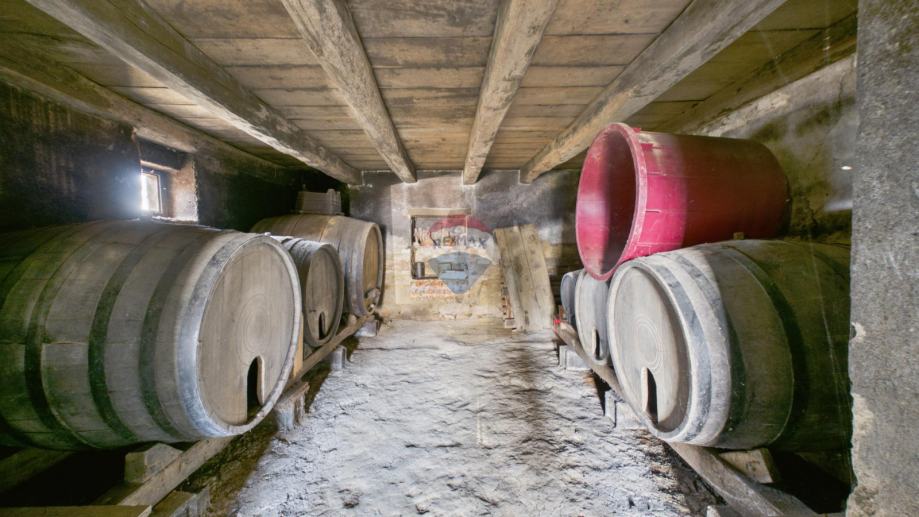Suteren: Garaža i autentični vinski podrum s očuvanim starim drvenim bačvama.