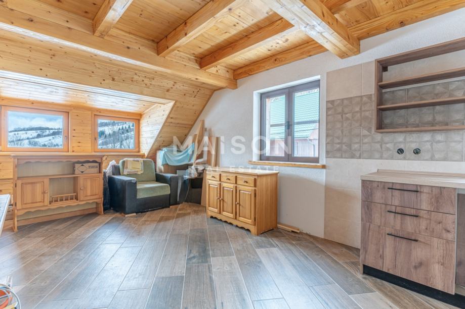 Okućnica od 791 m² pruža mogućnost proširenja sadržaja, uključujući vanjsku terasu s pogledom na netaknutu prirodu, savršenu za goste koji traže autentično iskustvo boravka u planinskom okruženju. S obzirom na sve veći interes za gorski turizam, ovo je idealna prilika za razvoj luksuznog smještaja, boutique hotela ili ekskluzivne gastronomske destinacije.
