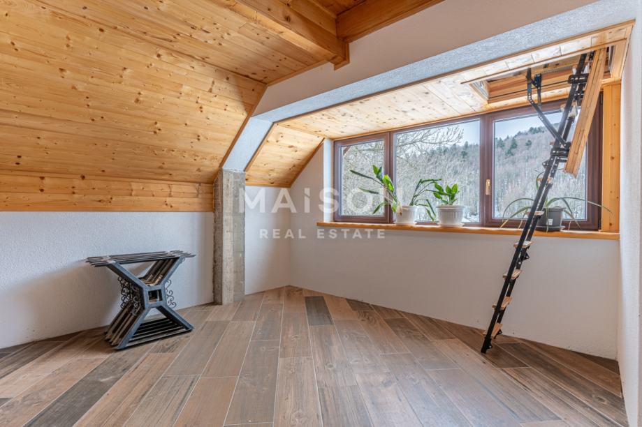 U najvišem naseljenom mjestu u Hrvatskoj, u okruženju gustih šuma i prekrasnog krajolika, smještena je ova jedinstvena turističko-ugostiteljska nekretnina s iznimnim potencijalom. S ukupnom bruto građevinskom površinom od 351 m², objekt se prostire na četiri etaže i obuhvaća konobu s kuhinjom u suterenu, dvije stambene jedinice u prizemlju te dvije dvoetažne stambene jedinice na prvom katu i potkrovlju. Novouređeni apartmani na drugoj etaži opremljeni su podnim grijanjem, dok apartmani na prvoj etaži pružaju priliku za adaptaciju prema vlastitim željama. Centralno grijanje osigurava ugodnu atmosferu tijekom cijele godine, a dodatni luksuz donosi sauna u jednom od apartmana.