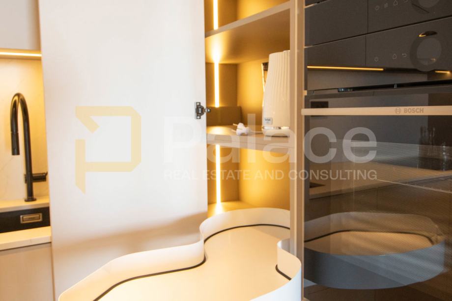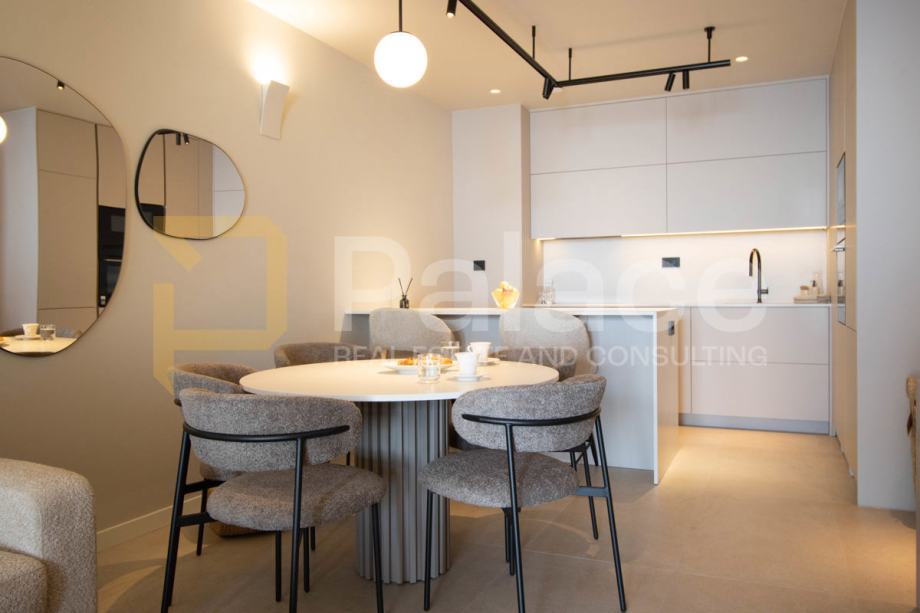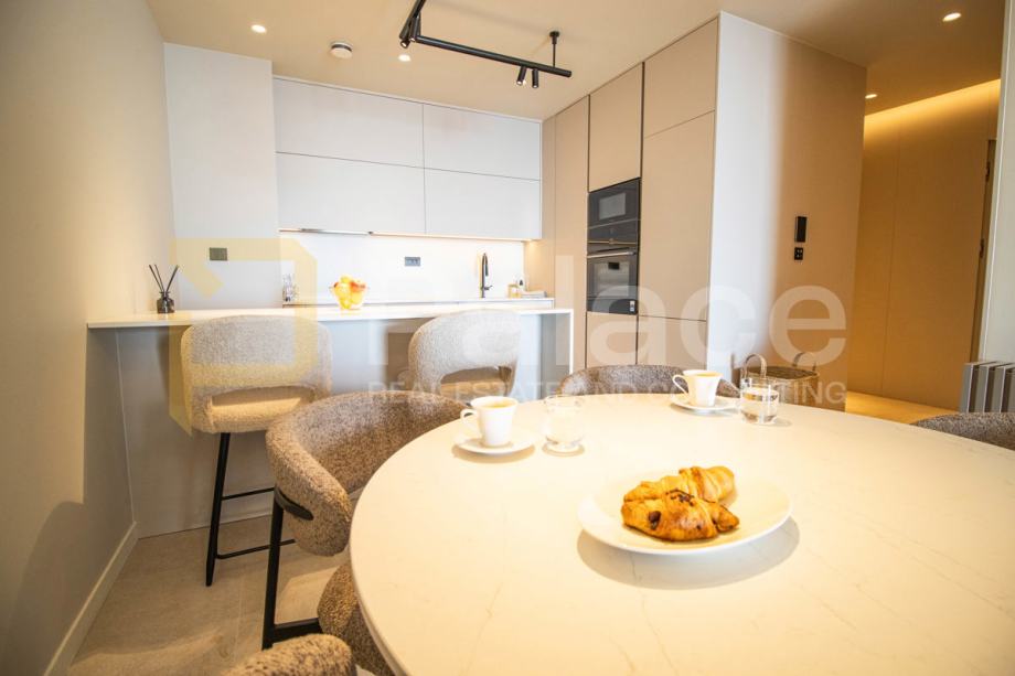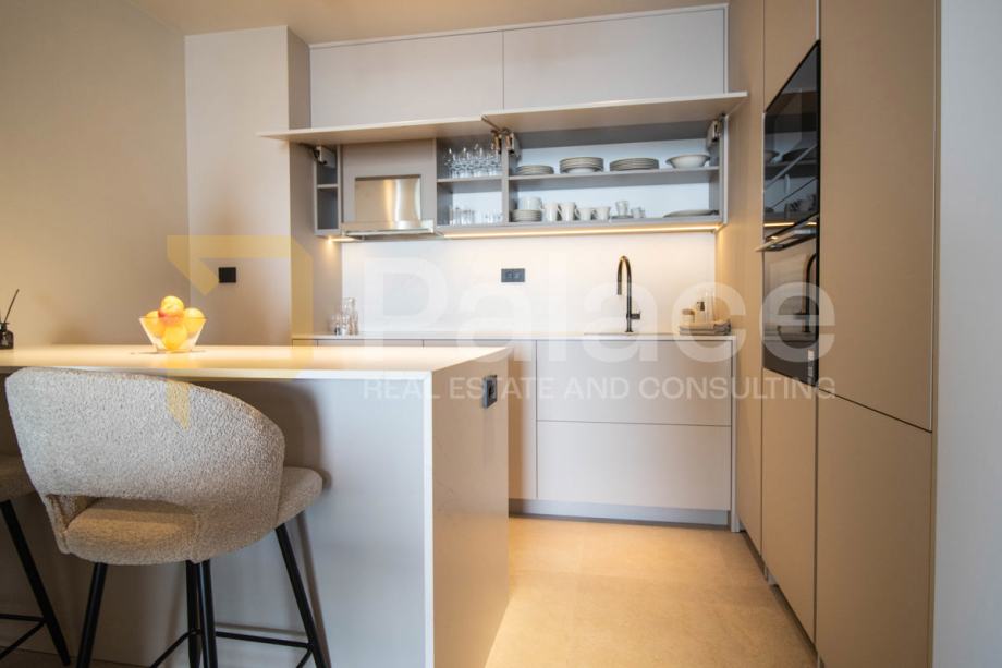 SAVRŠENO UREĐEN, USELJIV ODMAHStan je kompletno namješten i opremljen do posljednjeg detalja, s pažljivo biranim dizajnerskim namještajem i materijalima najviše klase. Svaki element interijera odiše elegancijom, funkcionalnošću i suvremenim minimalizmom.