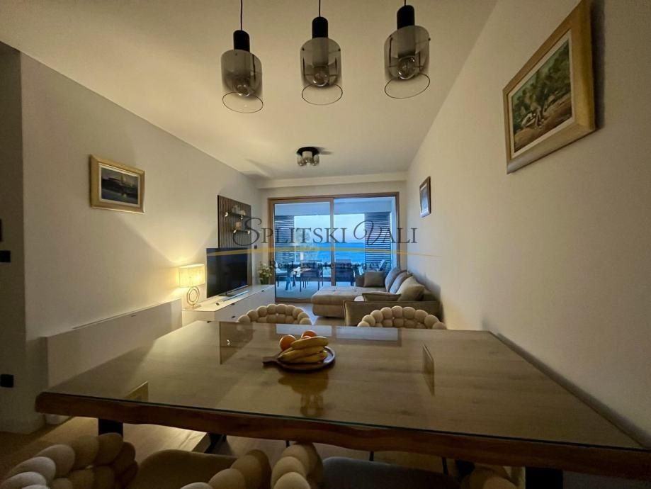 Stan je površine 82m2, a sastoji se od ulaznog hodnika, kuhinje s blagovaonicom i dnevnog boravka, dvije spavaće sobe, dva moderno uređena kupatila te zatvorene lođe od 20m2 koja ima infracrveno grijanje i pogled na more. Nalazi se na izvrsnoj lokaciji!