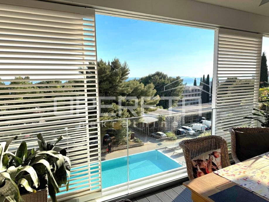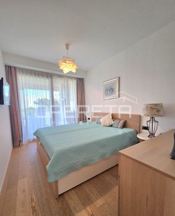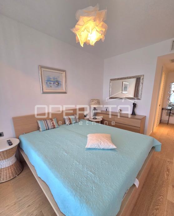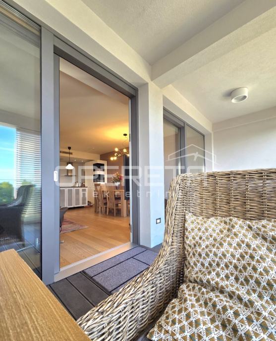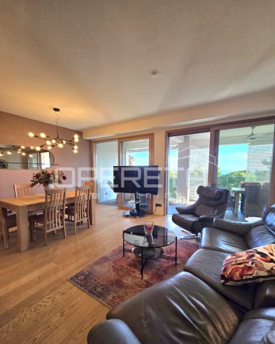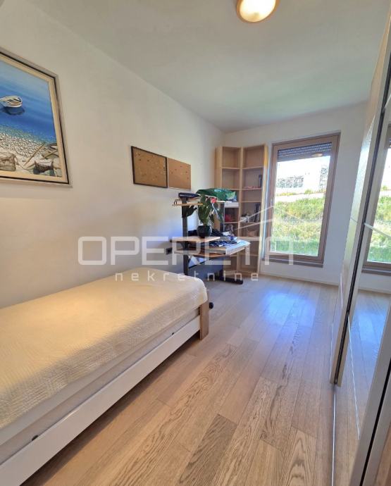 Idealan za dugoročni najam. Stan se nalazi u modernoj zgradi koja pruža vrhunsku udobnost i sadržaje, a iz njega se pruža predivan, otvoren pogled na more. Sastoji se od prostranog dnevnog boravka povezanog s potpuno opremljenom kuhinjom, tri komforne spavaće sobe i dviju elegantnih kupaonica, te gostinjskog WC-a, dok velika terasa omogućuje uživanje u miru i panorami. Zgrada raspolaže teretanom i bazenom namijenjenima isključivo stanarima, osiguravajući dodatnu razinu luksuza i privatnosti. Uz stan dolaze dva garažna mjesta te pripadajuća ostava, a nekretnina je dostupna od 1.1.2026.godine.