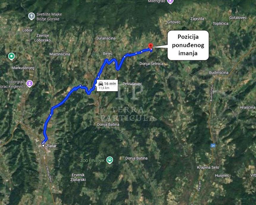 Na prodaju nudimo staro zagorsko imanje površine 3.903 m² u potpunosti u zoni gradnje. Na njemu se nalazi više objekata; mlin stambena kuća, gospodarske zgrade ... Na imanju je izvor koji čini manji potok s istočne strane dok je sa zapadne strane imanje omeđeno još jednim potokom. Spajaju se u jedan na kraju imanja na južnoj strani. Od priključaka tu su struja (17kW) i voda. Plin je u ulici. Do njega vodi asfaltni put. Vlasništvo je listo, bez tereta. Građevine je potrebno ozakoniti.