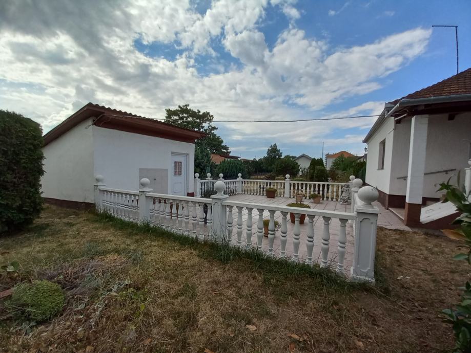 Četverosobna djelomično adaptirana prizemnica ukupne površine 80m2, u extra mirnoj stambenoj ulici Kralja Tomislava br.84. u Belom Manastiru. Kuća se nalazi na parceli površine 1007m2, te ima kolni ulaz u dvorište. Građena je početkom 70-ih. godina, djelomično adaptirana. Kuća ima ukupnu površinu od 80m2. Kuća ima jednu stambenu etažu, prizemlje. Prva etaža prizemlje kuće površine 80m2 sastoji se iz prostranog dnevnog boravka povezanog sa kuhinjom i blagovaonicom koja ima izlaz na dvorišnu terasu, dvije veće sobe, jedne manje sobe, kupaonice i hodnika. Kuća ima manji podrum površine 10m2. Kuća ima grijanje na struju te postoji mogućnost spajanja na uličnu plinsku mrežu. Kuća je tvrdo građena, opeka, crijep. U dvorioštu kuće sa kolnim ulazom nalazi se više parking mjesta, dvorišna zgrada/jednosoban stan površine 35m2 koji se sastoji iz sobe i kuhinje, dvorišna zgrada/garaža površine 40m2, te zelena površina..
